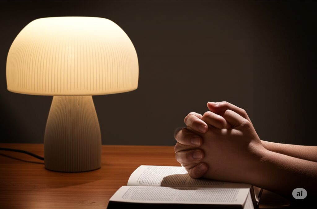 If you’ve placed a small bench, shelf, or table in your spiritual nook, a table lamp brings intimacy to the moment. It lights your Bible, your journal, your hands during worship. It doesn’t flood the room—it anchors the moment.