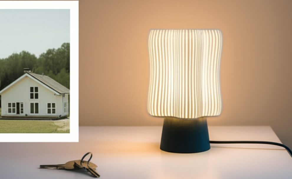 They unwrap a sculptural, elegant bedside lamp — glowing softly with a custom 3D printed lamp shade, designed to anchor their most personal space.